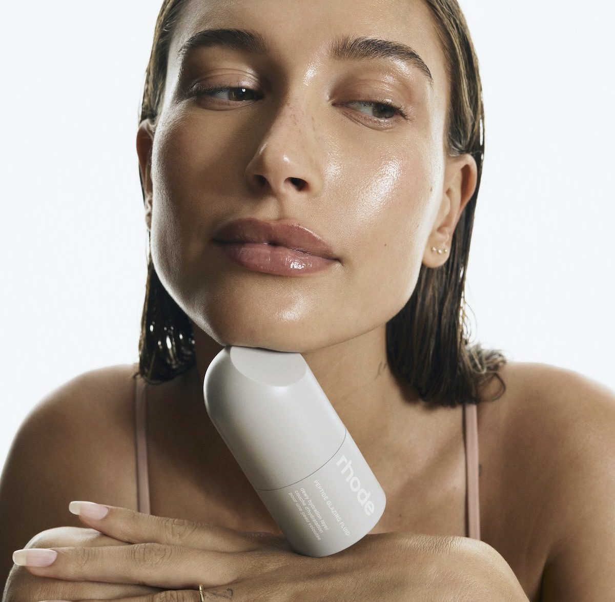 Hailey’s beauty products are fragrance-free, all products are translucent, and have a simple but effective list of ingredients. For example, the fluid contains niacinamide, a form of vitamin B that fortifies the skin’s protective barrier, reduces pore size, and shields against UV harm and irritation. This product also contains peptides, hyaluronic acid, glycerin and squalene. It took two years to perfect the formula, with Hailey trying out over a dozen different versions before landing on the final one.