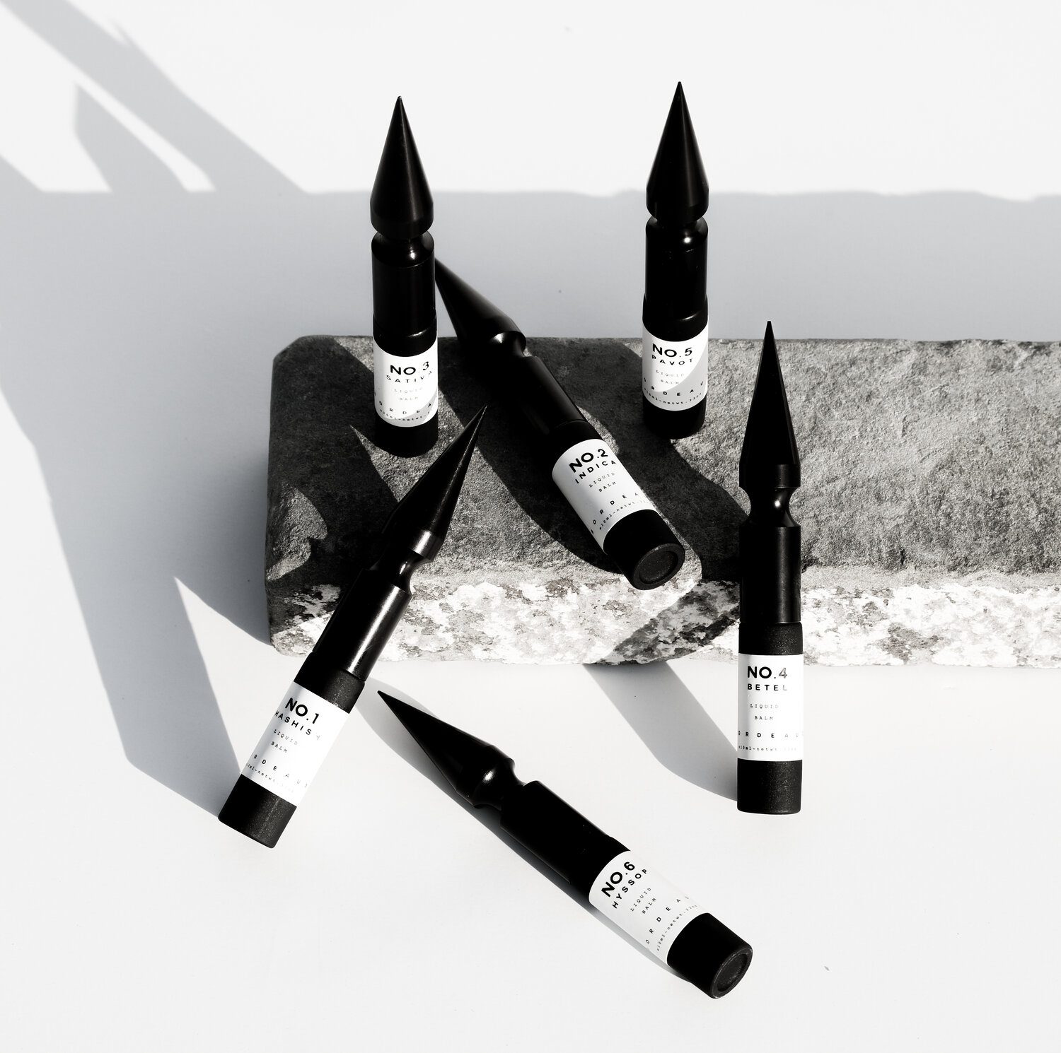 В коллекцию ароматов входят шесть композиций. Абсолютные бестселлеры бренда — “HASHISH” (каннабис, черная смородина, полынь, корица, кумин, гвоздика, имбирь, сандал, дубовый мох, амбра, ветивер) и “SATIVA” (каннабис, мускус, прозрачный белоцветочный аккорд, бергамот, герань, табак). Также обрели своих поклонников “INDICA” (каннабис, бергамот, сандал, мускус, морской аккорд, плющ, лавровый лист), “BETEL” (кипарис, бергамот, лаванда, табак, хвоя, гиацинт, черный чай, жасмин, палисандр), “PAVOT” (мак, бергамот, перец, сандал, амбра, мирт, нероли, гардения, дельфиниум) и “HYSSOP” (марокканская мята, кардамон, иссоп, базилик, гвоздика, жасмин, кипарис, лаванда, тимьян, кедр).